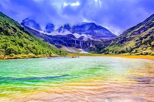 五色海海拔4600米,湖面呈圆形。面积0.7公顷,现代冰谷下伸至湖畔,雪山倒影湖面,呈现奇幻的色彩。是藏区著名的圣湖,据传能“返演历史,预测未来”。有很多宗教上的传说。