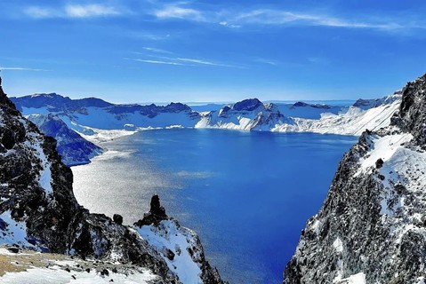 天池——冰雪童话世界:冬季的长白山被白雪覆盖。尤其是天池,湛蓝的湖水与纯白的雪岸形成鲜明对比,景色壮丽,丰富的玩雪体验:除了赏雪,还可以体验滑雪乐趣,或在天然雪地温泉中感受冰火两重天