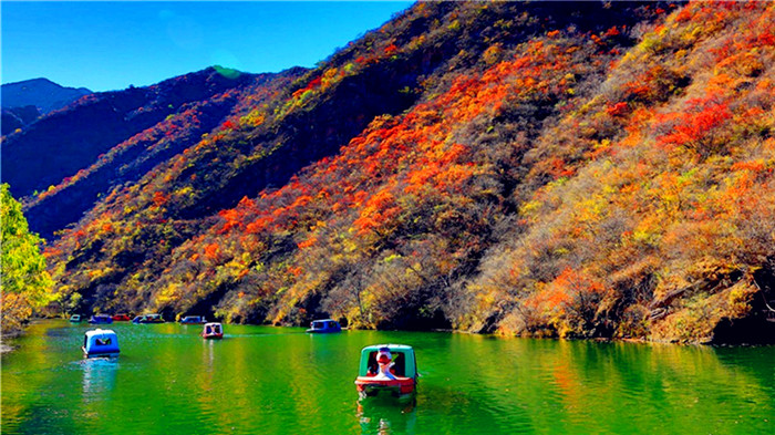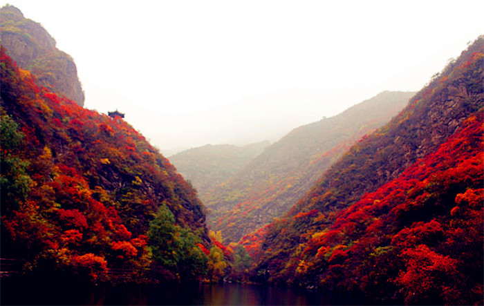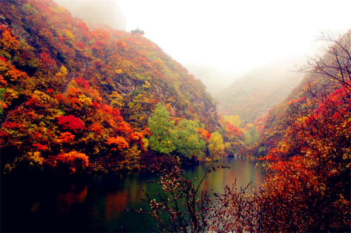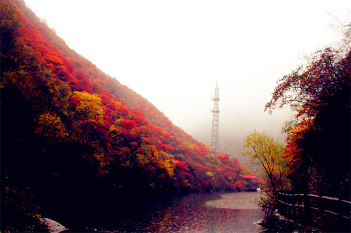 金秋时节,秋高气爽,群山红遍,层林尽染,姹紫嫣红,湖光倒影,山被红叶遮掩,水被红叶浸染,道被红叶铺成,一簇簇、一团团燃成秋的火焰,美不胜收。您不仅可远眺红叶幻色炫彩的缤纷景致,还可俯视星罗棋布于山谷中的各处景点。