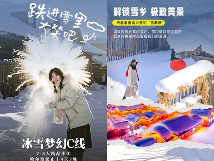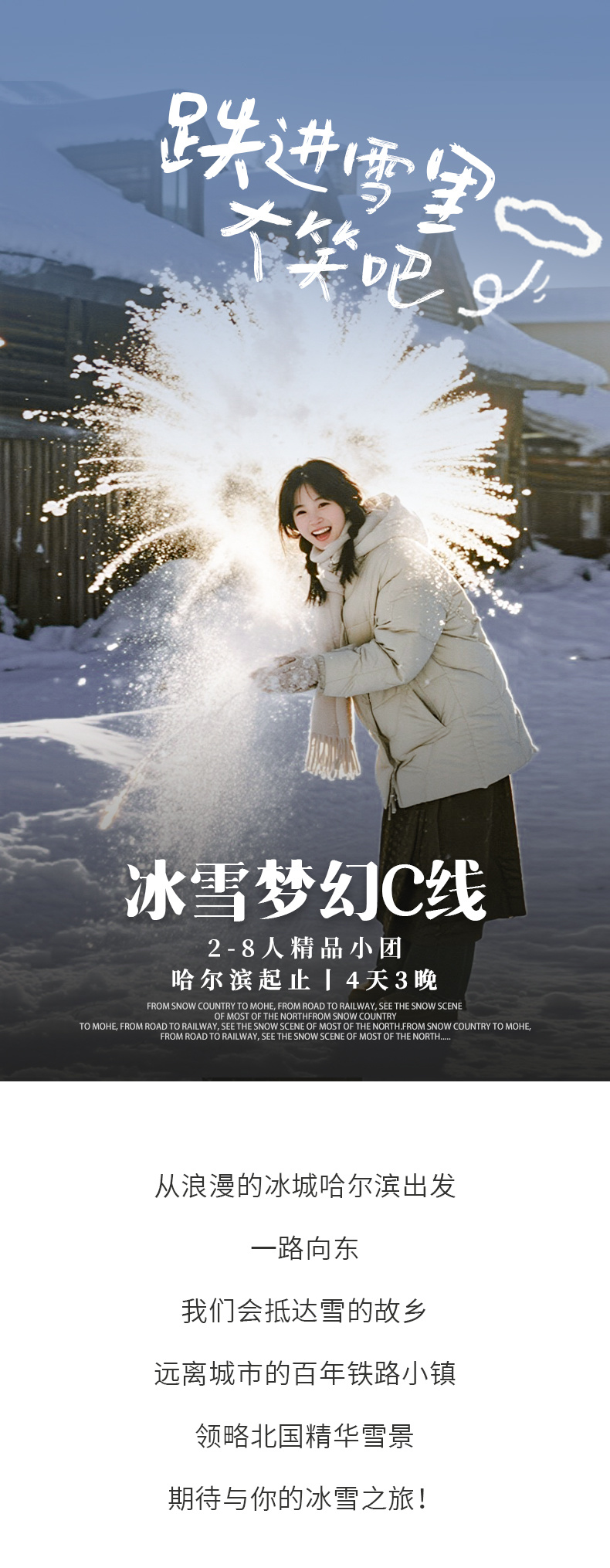 雪乡泼水成冰-网红雪地摩托冲浪-梦幻雪山-(300km,车程约6小时)哈尔滨解散