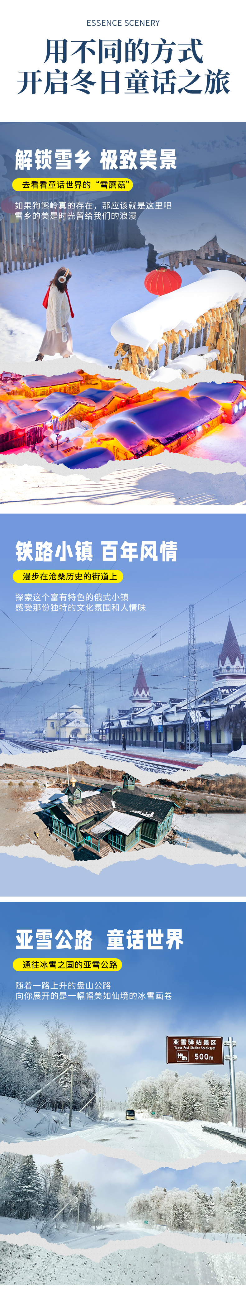 4、门票:雪乡门票+往返环保车、亚布力3小时滑雪包含雪鞋雪板雪杖使用(滑雪时间从取雪具开始计算,到还雪具结束)