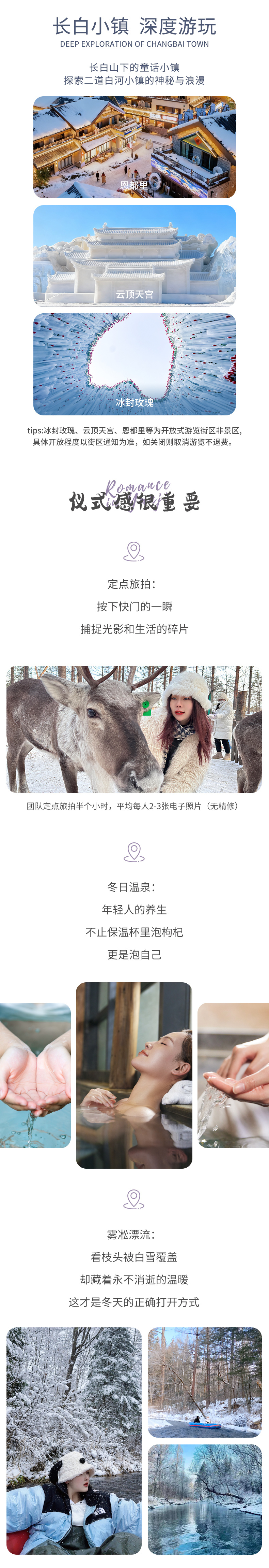 二道白河-雪地漂流-滑雪(30KM,车程约1小时)-冰封玫瑰-云顶天宫-二道白河高铁站(长白山站)(30KM,车程约1小时)(可跟车回延吉)