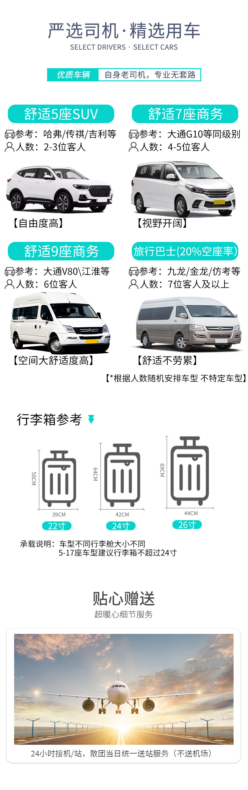 tips:用车仅以客人人数为标准,不包含司机、领队。