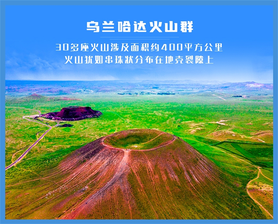 早餐后,我们集合前往乌兰哈达火山草原,抵达8号火山起点,稍适休整开始徒步。我们沿着8号(可登顶)、7号(可登顶)、6号(外围拍照)、5号(可登顶)、4号(可登顶)火山徒步,全程约10公里,爬升约350米。