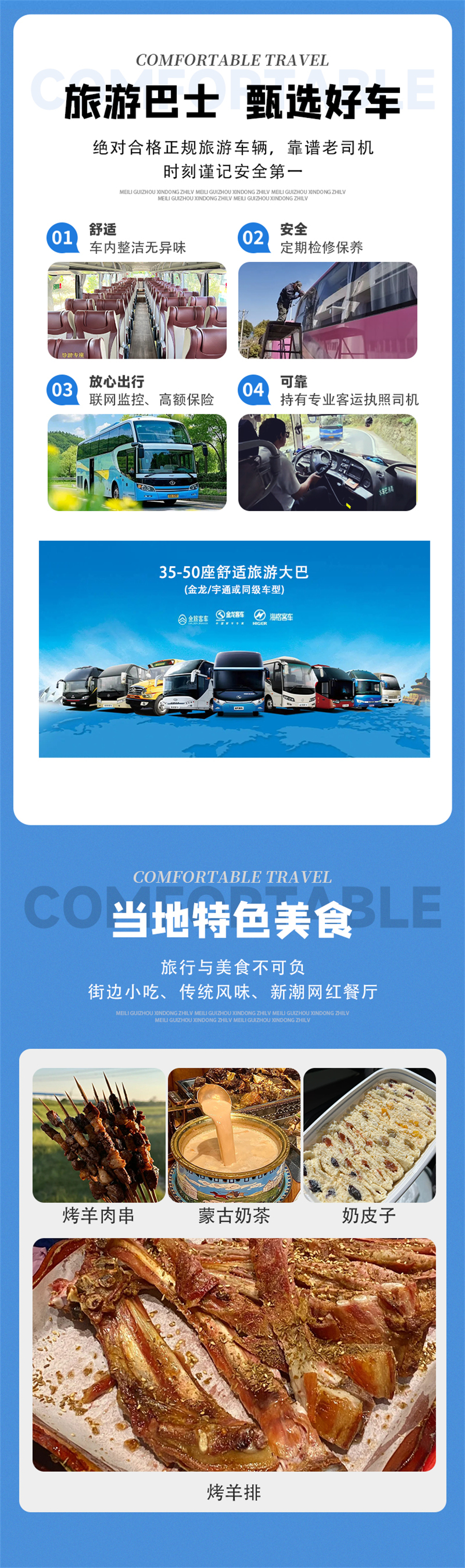 2、车上座位顺序为集合时先到的先坐,发车之后保持原车原座(有老年人、晕车等情况的领队将酌情调整);
