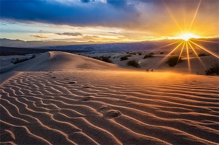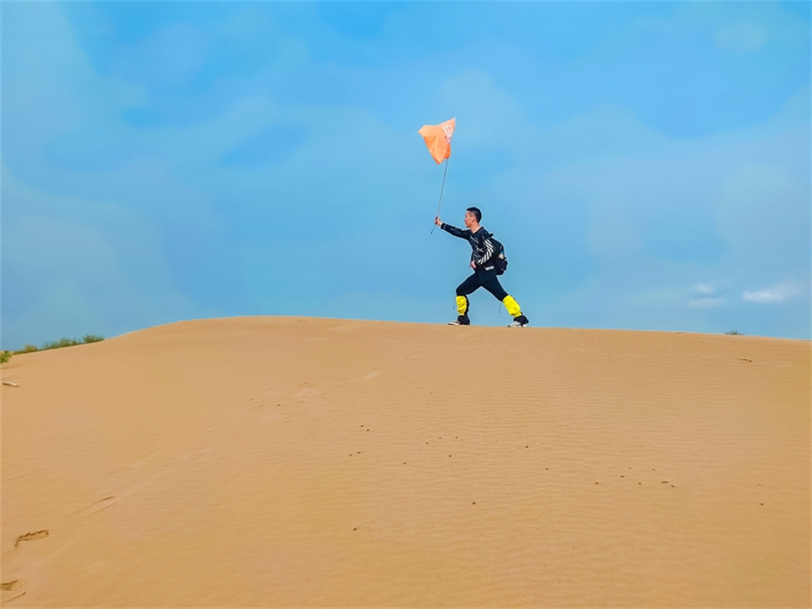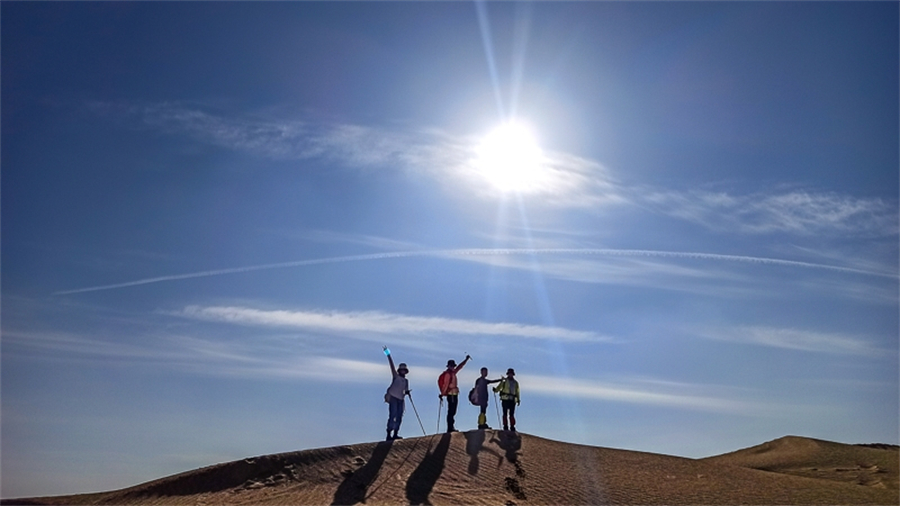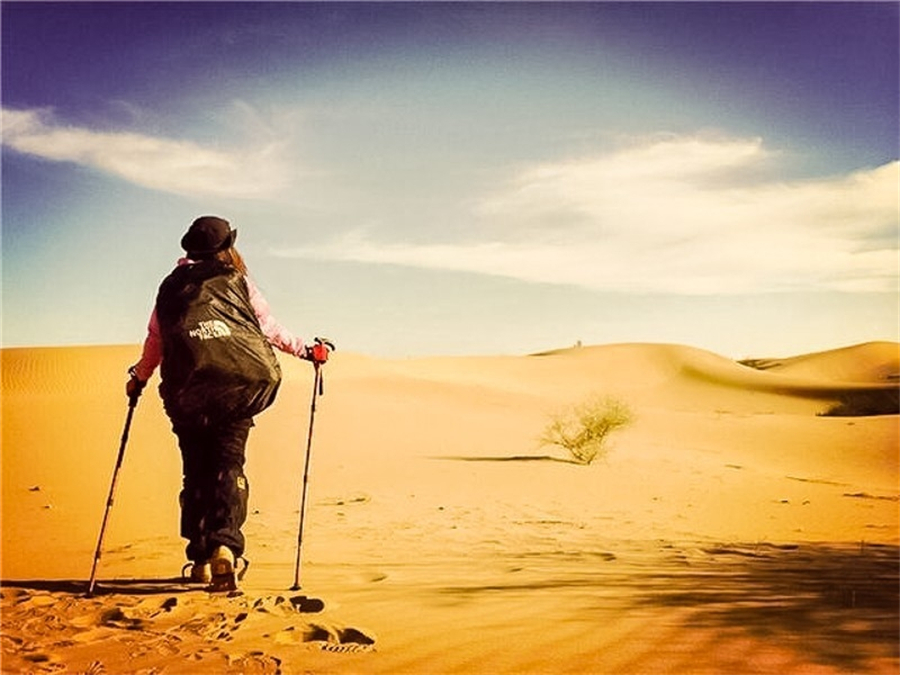早上继续出发,前往中国第七大沙漠库布齐沙漠徒步。领队开始会给大家讲解沙漠徒步注意事项,到达沙漠边缘,稍适休整,之后开始第一天的沙漠穿越,今天要经过很多种地貌,沙漠行走注意补充营养、水分。在沙山中行走要求队员有更好毅力与耐力,跟紧领队的步伐。途中需翻越几座比较高沙山,中途在沙漠中的绿洲边休息、路餐,全程徒步约12公里,爬升约150米(如体力不好,也可以前往附近沙漠地质公园游览骑骆驼、玩沙地摩托等)(注:每人需准备2-3升水,午餐1份)