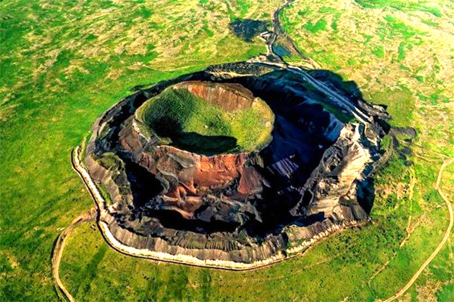 乌兰哈达火山群,绵延近千公里,形成于12万年前的第四纪晚期,直到2012年才被国内外火山学界所知。这是一片尚未被大肆炒作、得以保持清净的火山,被《美国国家地理》杂志誉为“中国醉美火山群”。我们可以爬上火山口,去一探究竟!这里喷发的炼丹炉火山,是我们主要参观的地方。在6号和4号火山的侧面,我们还能看到当年火山喷发后留下的凝结的岩浆,和碳的颜色相似,但是由于有硫磺等物质,表面会泛着七彩的颜色,非常好看,我们在这里尽情游玩、拍照。