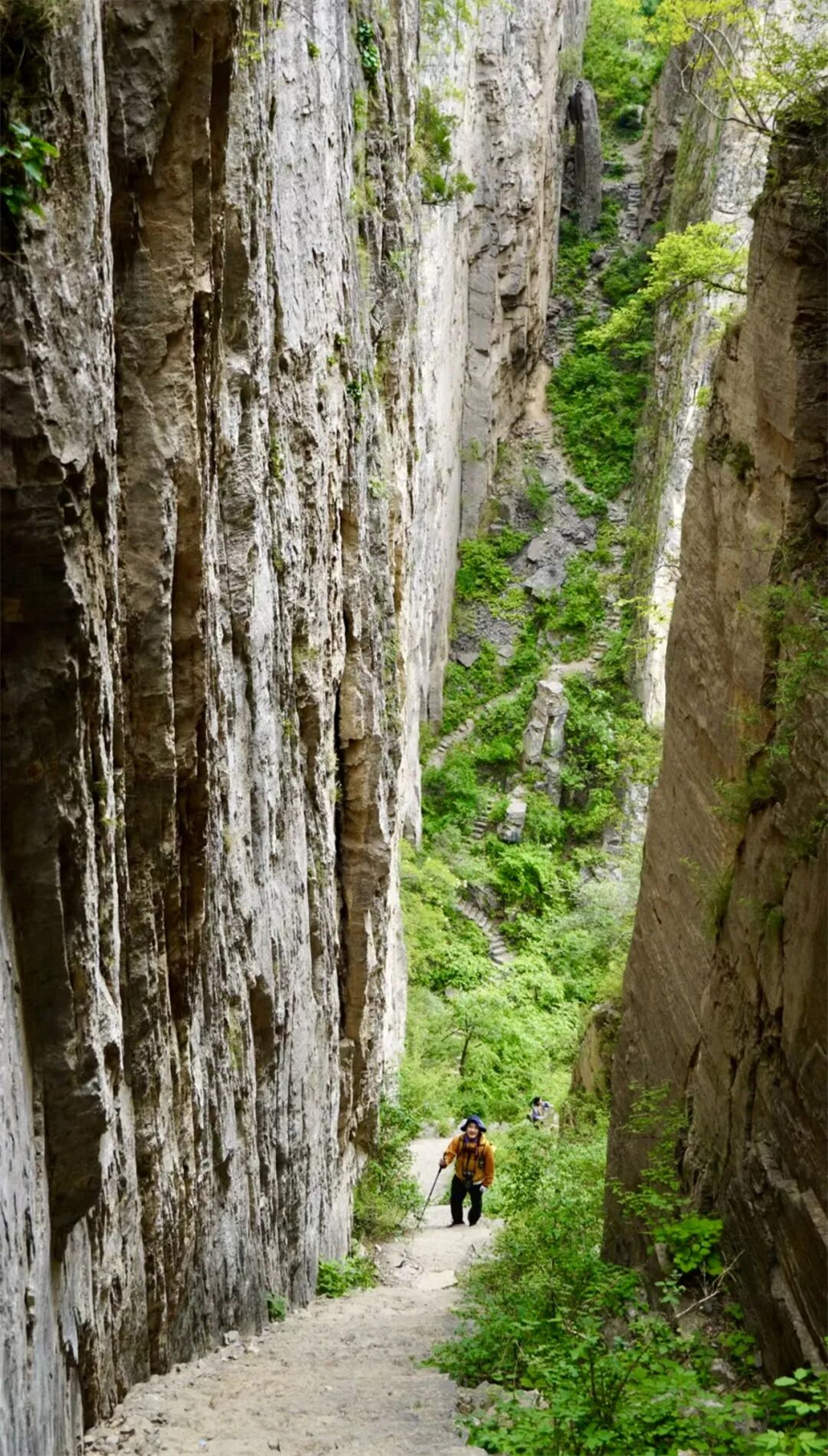 【活动强度】本次徒步自丁家岩-瑛姑峡-万佛寺-天生桥-鹅屋(宿)-黄崖底-柿园-三山垴(宿)-孙石窑-上腊江-南窑-罗姐寨下山结束。全程52km,爬升2150m,下降2350m,耗时三天完成。每日强度为初级强度但强度等级不同,综合考虑本次活动属于中级强度。