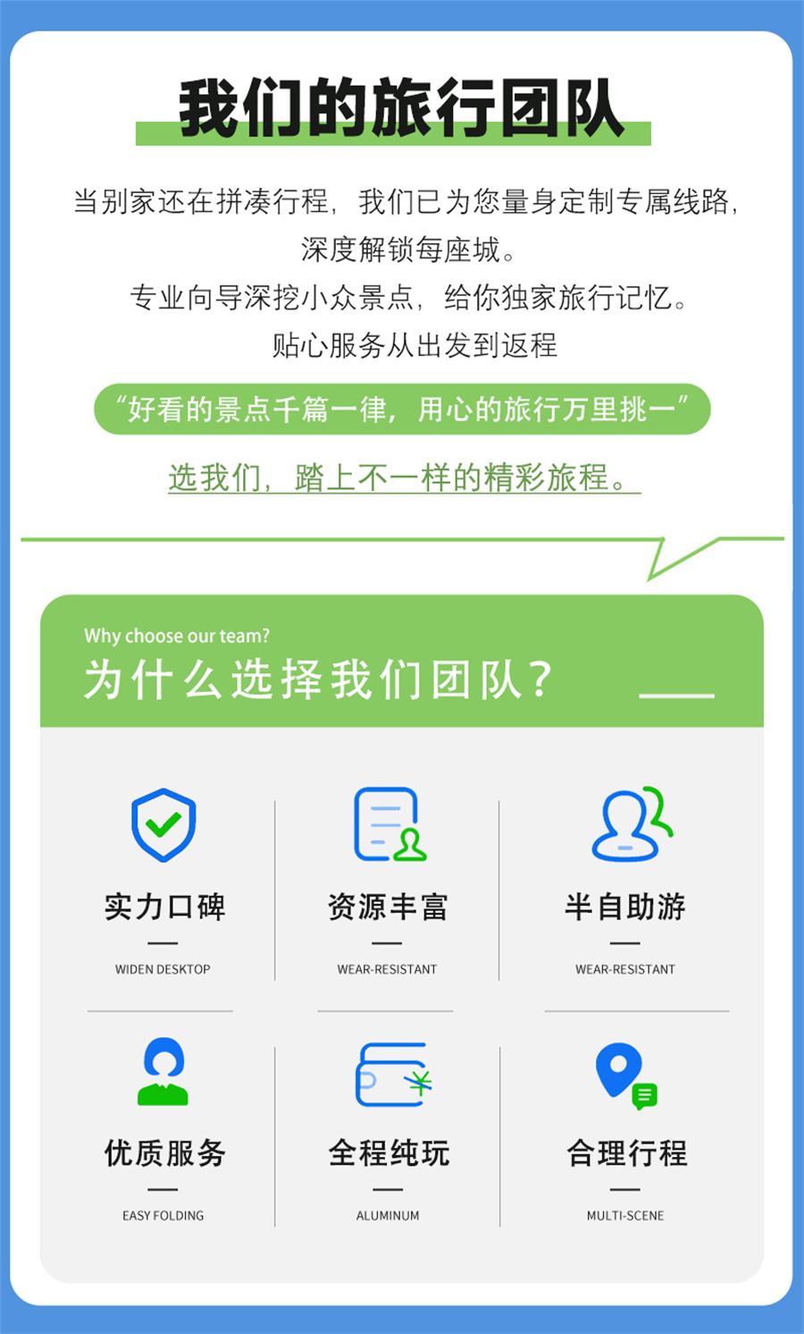 3、成团说明:如因参团人数未达到发团人数则取消当期活动,活动出行前提前通知并全额退款,积极为游客推荐类似路线或拼团。