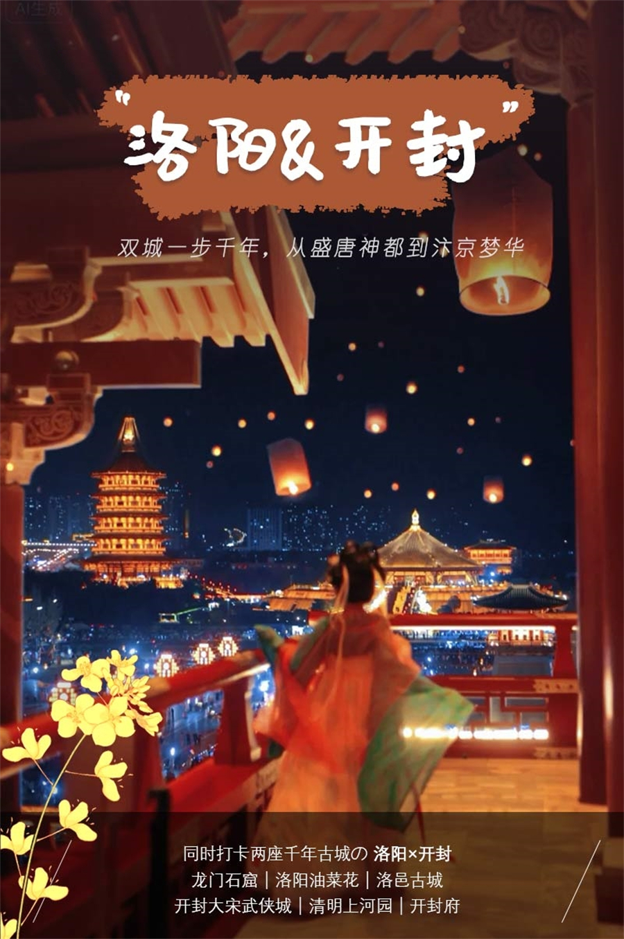 【活动地点】【洛阳开封】同时打卡两座千年古城+玩转龙门石窟+洛阳油菜花+洛邑古城+开封大宋武侠城+清明上河园+开封府3日游