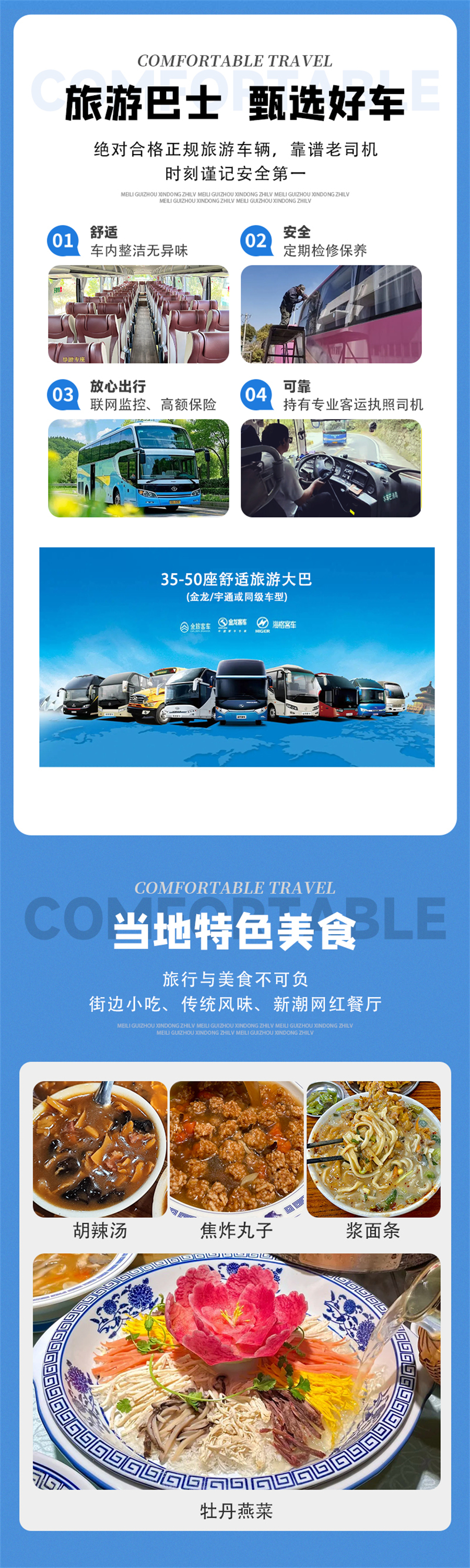 2、车上座位顺序为集合时先到的先坐,发车之后保持原车原座(有老年人、晕车等情况的领队将酌情调整);