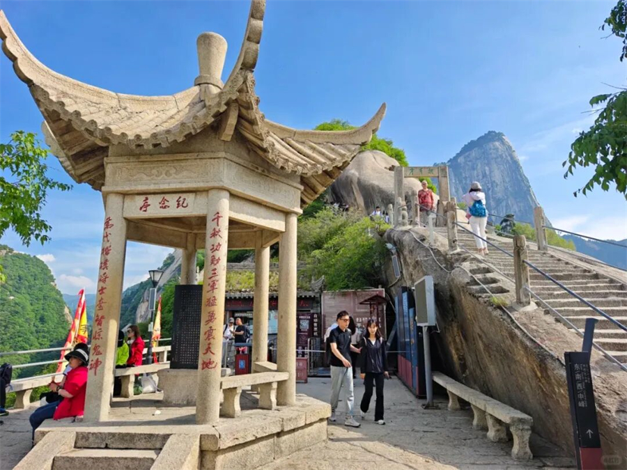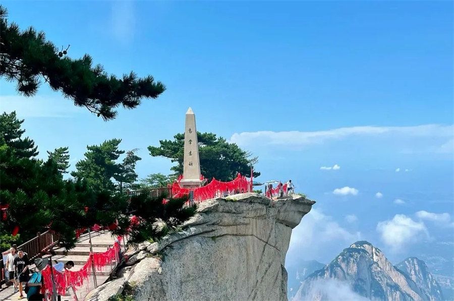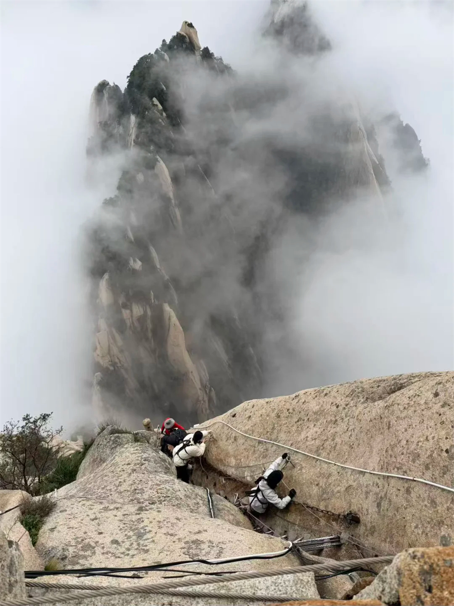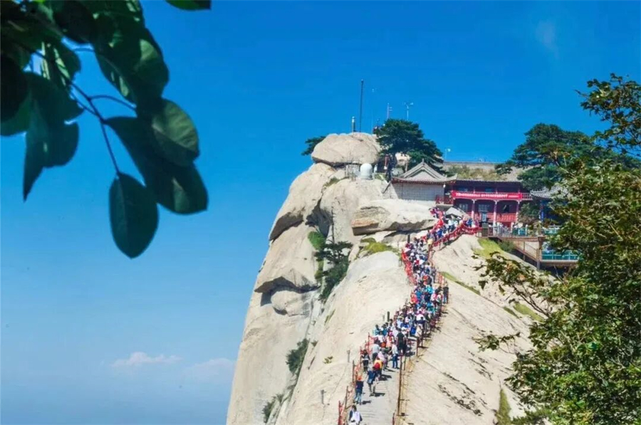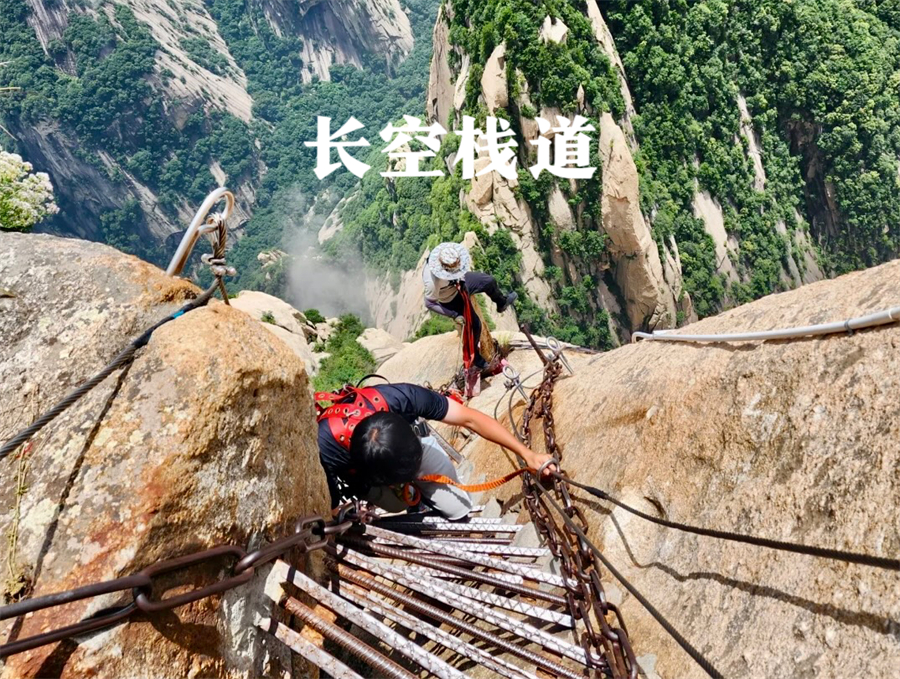 今日早起,一早前往登【华山】,一定要带上今天上山的粮食和水呦!我们乘坐那亚洲最长的缆车到达西峰,你可以坐在缆车上看到脚下险峻的山势,也能看到在攀爬的人们,刺激到爆炸!之后走华山最高峰—南峰炼丹炉、南天门。想寻求挑战的朋友们可以去长空栈道试试,那里只有木板和铁链相连,挂在峭壁之上,仅能通过一人,长空栈道人比较多,需要单独排队,大家自愿尝试。之后我们走东峰,很多人愿意来这里爬鹞子翻身,这里比长空栈道稍微稳妥一点,但也需要绑着安全措施直上直下,能看到下棋亭。之后走天梯,绕回到西峰,坐缆车下山,欣赏这华山的傍晚。