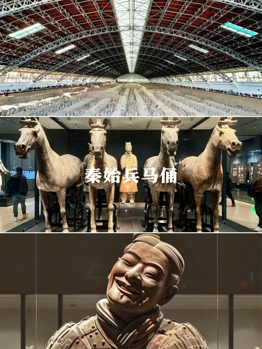 早饭后我们前往世界第八大奇迹【秦始皇帝陵博物院】!我们参观1、2、3号坑,能看到陶马、有彩绘残迹、各种造型的陶俑、形象生动,栩栩如生。