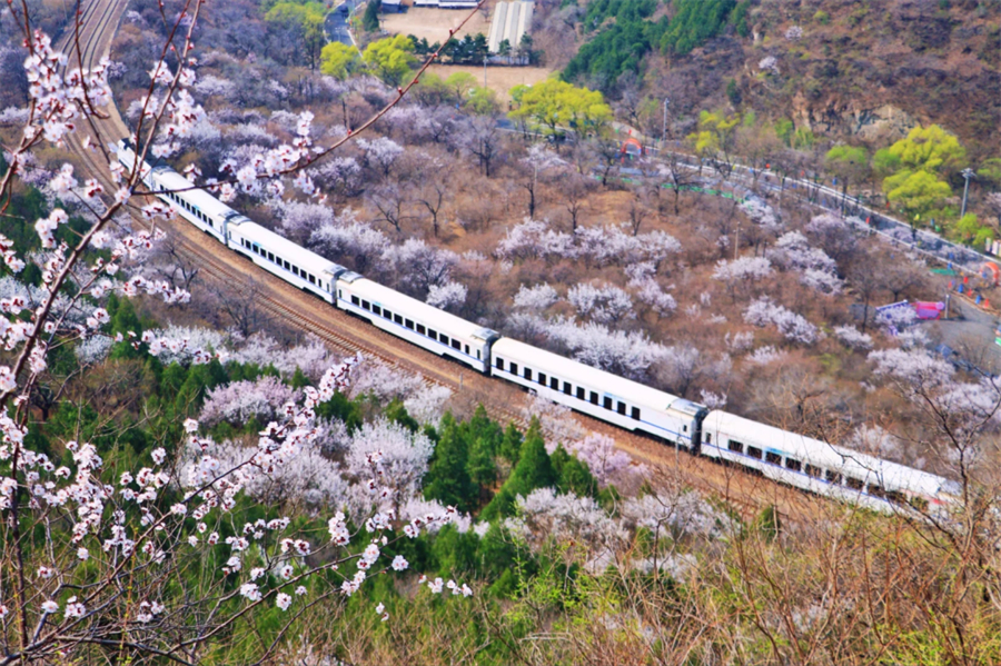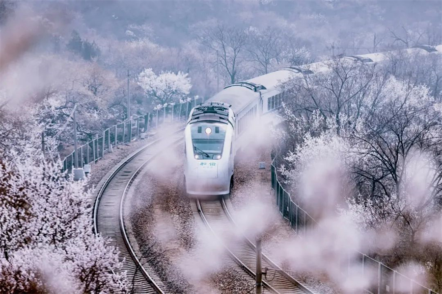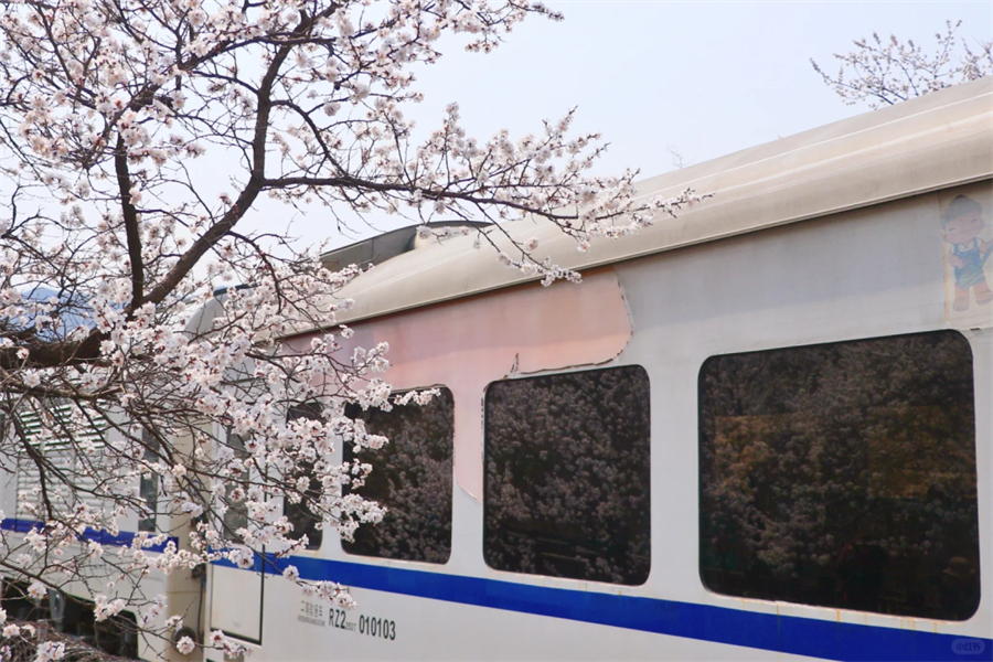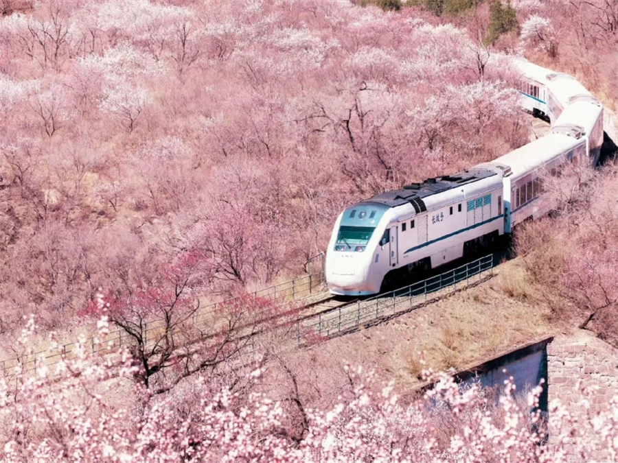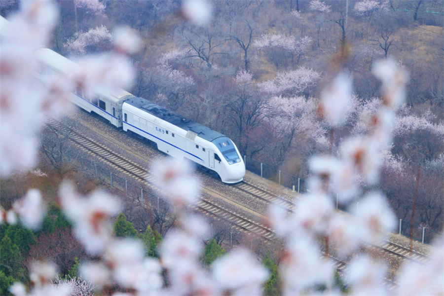 这里的花海列车美到爆炸!在居庸关长城到八达岭长城之间,梨花、桃花、各种花朵竞相开放,在居庸叠翠伴桃杏的日子里,一趟白色的列车穿越花海。还在羡慕日本火车穿行在开满樱花的铁轨上吗?咱们家门口也有这样一条美丽的线路每年3月底4月初的时候,北京居庸关长城脚下的花海盛开,沿途枝桠花正盛,春正好。