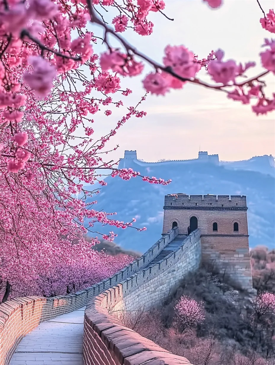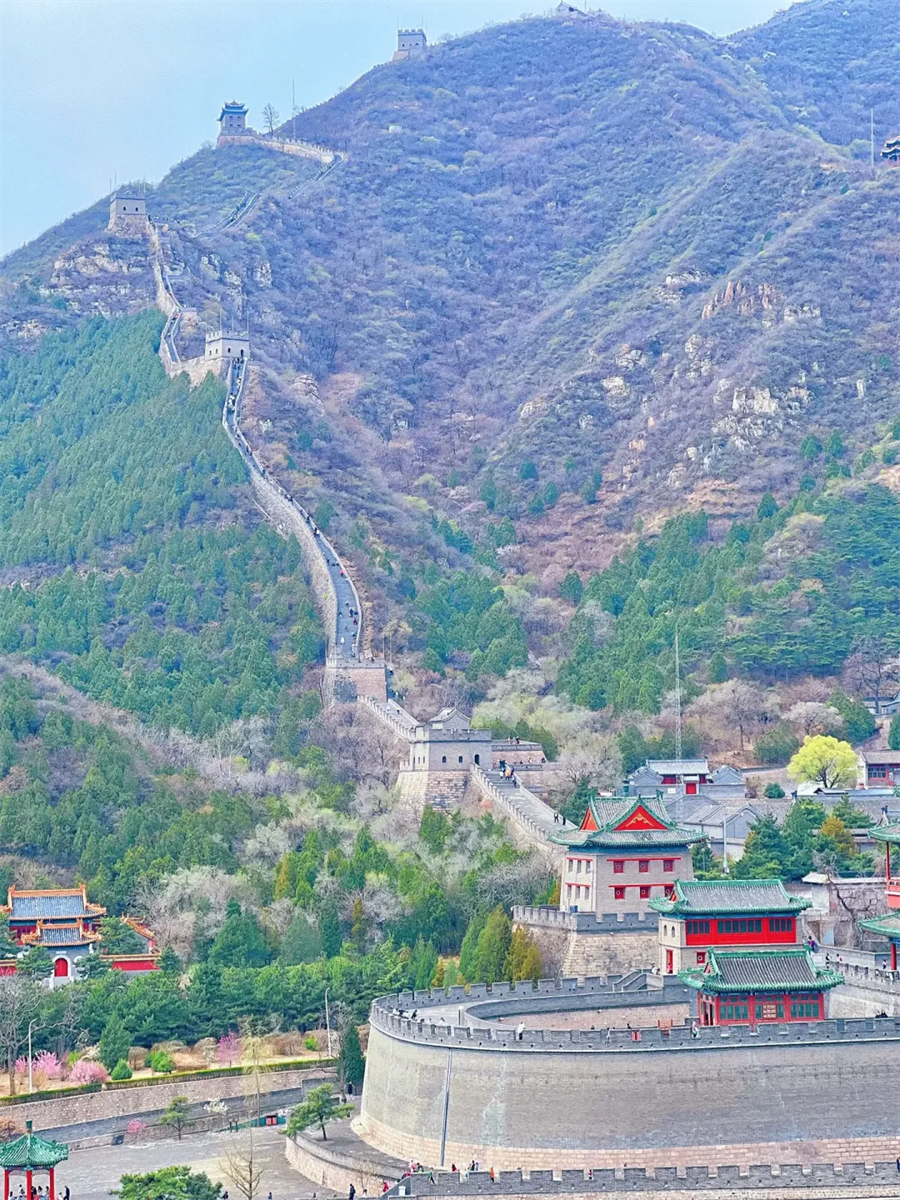 适时自行前往游览天下第一雄关—居庸关长城。春天山花烂漫,在长城内外分外妖娆。攀爬长城到最上面的烽火台一般需要两三个小时,登上山顶后即可看到著名的京城八景之一“居庸叠翠”,远处翠山连绵,山峦叠张,非常漂亮。