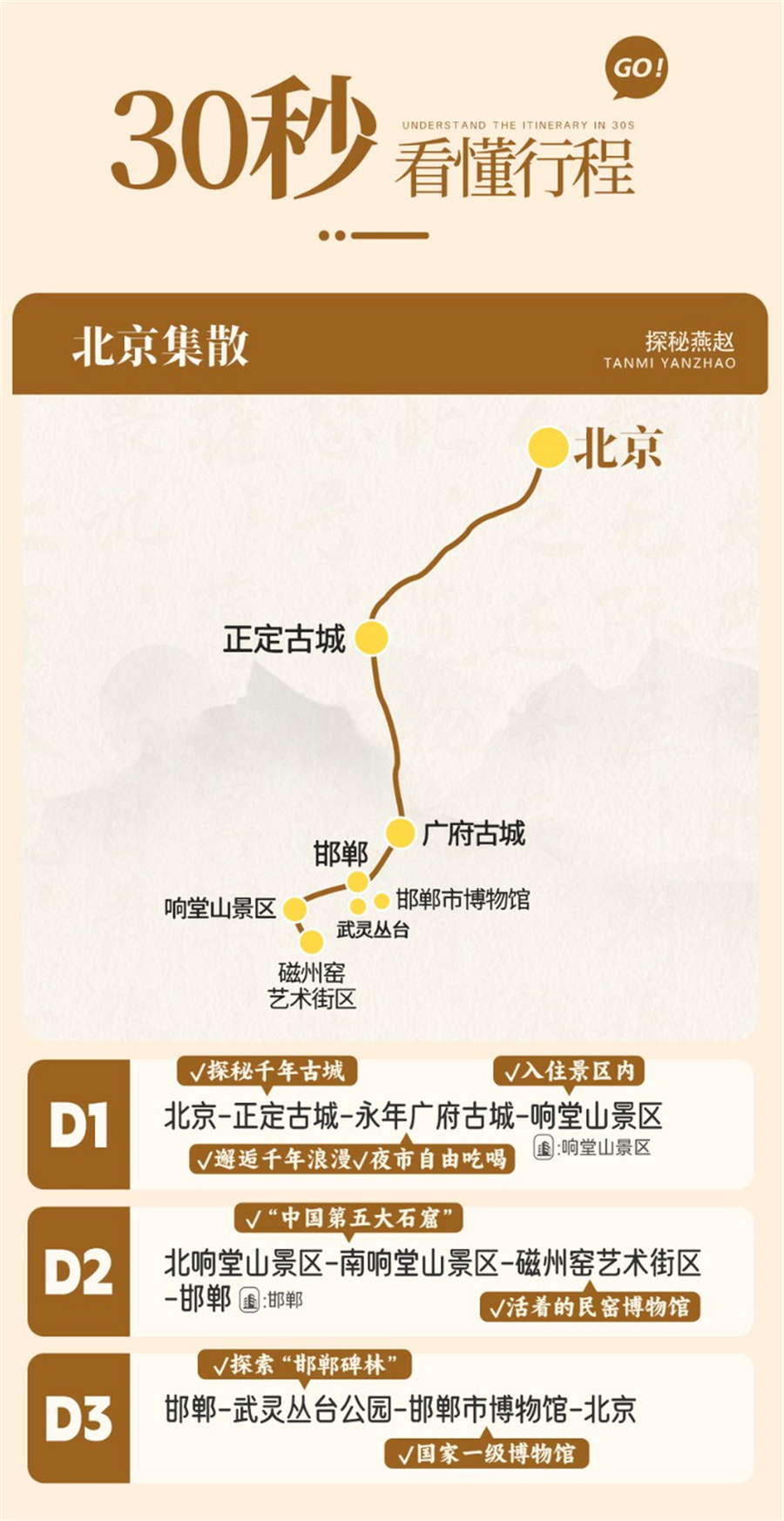 河北 邯郸 清明3日【邯郸】正定古城+广府古城+响堂山石窟+磁州窑艺术街区+邯郸市博物馆+赠送门票及景区讲解+3