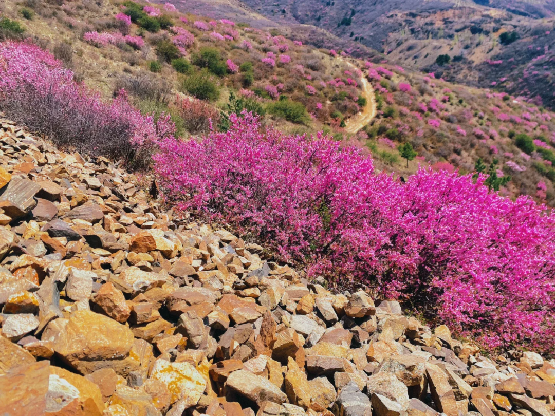 青边口位于张家口东望山乡,是中原与塞北间的重要连接点。青边口漫山遍野的榆叶梅,如云蒸霞蔚,红遍边关古城,是最佳赏梅地点,每年4月底到5月初,梅花开放。山腰已盛开,山顶还是花苞,本周赏花点上移,花漫山遍野,超美。欢迎一起来踏青赏花。可以尽情地拍照和赏景。