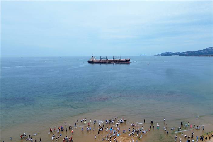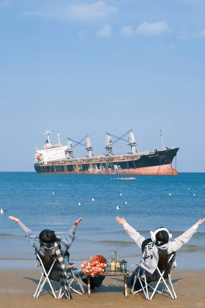 - 下午抵达网红布鲁维斯号沉船打卡。它是一艘海边搁浅的来自巴拿马籍的货轮,2022年9月,受环流影响搁浅于山东威海那香海海域,现在已成为威海网红打卡点。