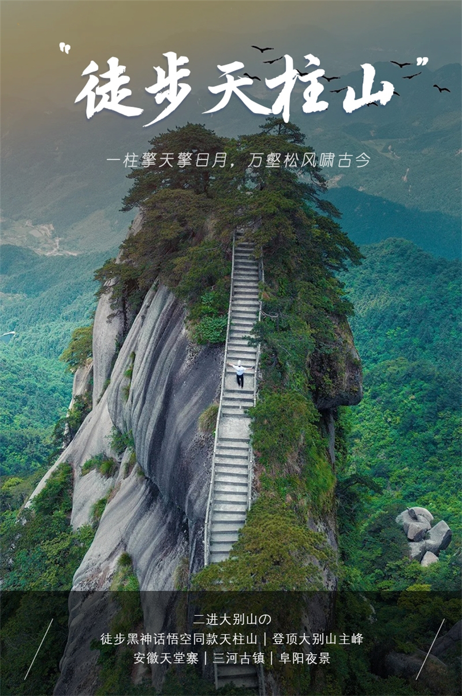 【活动地点】【徒步天柱山】二进大别山+徒步黑神话悟空同款天柱山+登顶大别山主峰+安徽天堂寨+三河古镇+阜阳夜景